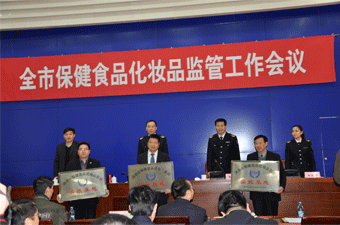 2013年3月13日,由濟南市食品藥品監(jiān)督管理局主辦的“濟南市保健食品化妝品監(jiān)管工作會議”在龍奧大廈隆重召開,來自濟南市及各縣(市)區(qū)監(jiān)管系統(tǒng)一線的執(zhí)法工作人員參加了此次會議。會議由濟南市食品藥品監(jiān)督管理局?;庩悘V銀處長主持,濟南市食品藥品監(jiān)督管理局衣光軍副局長、?;幎艜詡タ崎L、?;幹煦y和科長出席會議,我公司和山東天地健生物工程有限公司、山東福瑞達生物工程有限公司參加了此次會議,并上臺領(lǐng)取了“濟南市保健食品化妝品監(jiān)管實踐基地”的標(biāo)牌。