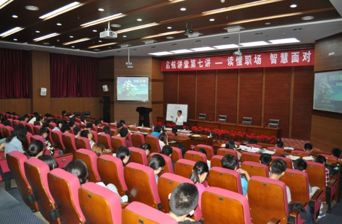2014年5月14日,晩7:00~9:30,在山東大學(xué)中心校區(qū)氣派的知新樓思源報告廳內(nèi),在就業(yè)指導(dǎo)中心王紀(jì)磊副主任、生命科學(xué)院韓春岫副書記、博導(dǎo)宋欣教授的見證下,二百余名學(xué)子,靜靜聆聽老校友湯傳忠先生作<讀懂職場,智慧應(yīng)對>的專題報告會。二個小時的時間層層剝繭,深入淺出,其實,壓力沒有那么大,困難沒有那么多,人生是一場馬拉松,也不必那么急,讀懂了職場,完全可以從容面對、智慧應(yīng)對。未來的路很長,走好人生的關(guān)鍵幾步,可以快樂工作,輕松生活,心燈點亮,夢想高飛,成人達(dá)己,游刃有余。