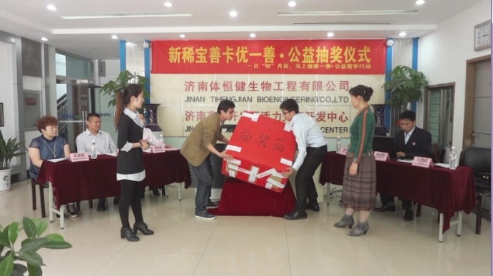 濃情五月,鳥囀鶯啼,花紅柳綠。由山東新稀寶股份有限公司孕嬰事業(yè)部主辦的“日‘鋅’月異,馬上健康—善·公益圓夢行動”抽獎儀式,于2014年5月19日下午14時,在山東新稀寶股份有限公司總部大廳隆重召開。山東省微量元素科學研究會副秘書長王秀紅女士以及濟南市槐蔭公證處公證員李法東先生、薛藝瀟先生應邀參加了此次抽獎儀式。同時,山東新稀寶股份有限公司常務副總經(jīng)理杜征國先生、山東新稀寶股份有限公司孕嬰事業(yè)部經(jīng)理張秋峰先生以及山東新稀寶股份有限公司孕嬰事業(yè)部副經(jīng)理鄧基霞女士也出席了此次抽獎儀式。