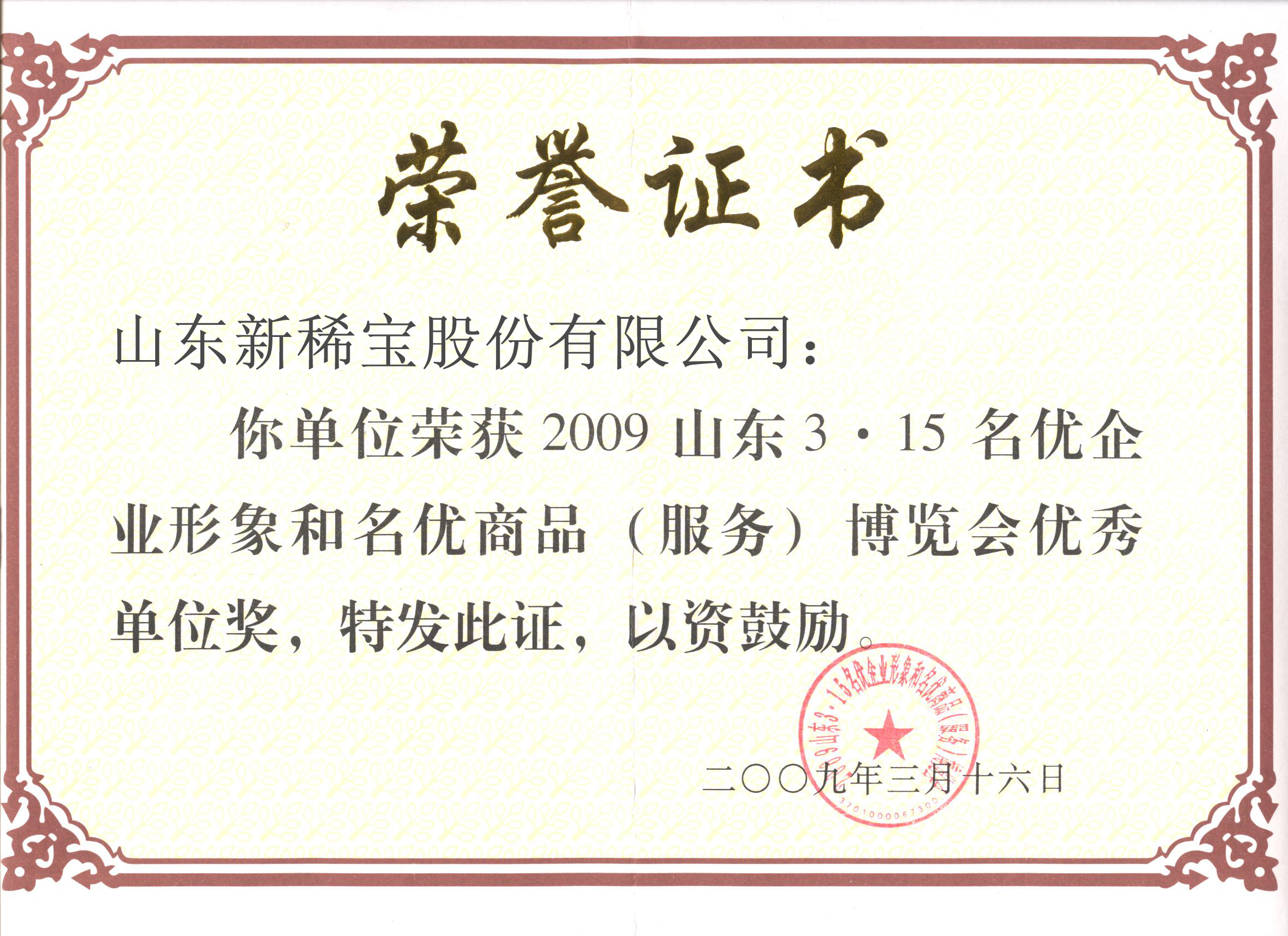 2004~2011年多次被評為“山東3-15名優(yōu)商品(服務(wù))和企業(yè)形象博覽會優(yōu)秀獎”