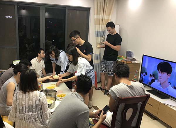 相較于廚房內(nèi)的熱火朝天,客廳里卻是另一番景象。大家就像是在自己家里一樣,放松地坐在沙發(fā)上聊天、看電視、吃水果,還有的同事湊成桌打麻將,偶爾聽廚房 里大廚們的“差遣”打打下手。相比于工作時間內(nèi)的合作,這個時候的大家更像是一家人,相處更放松、更愜意。多了工作以外的接觸和了解,相信大家以后在工作 中溝通更加順利、合作更加親密無間。