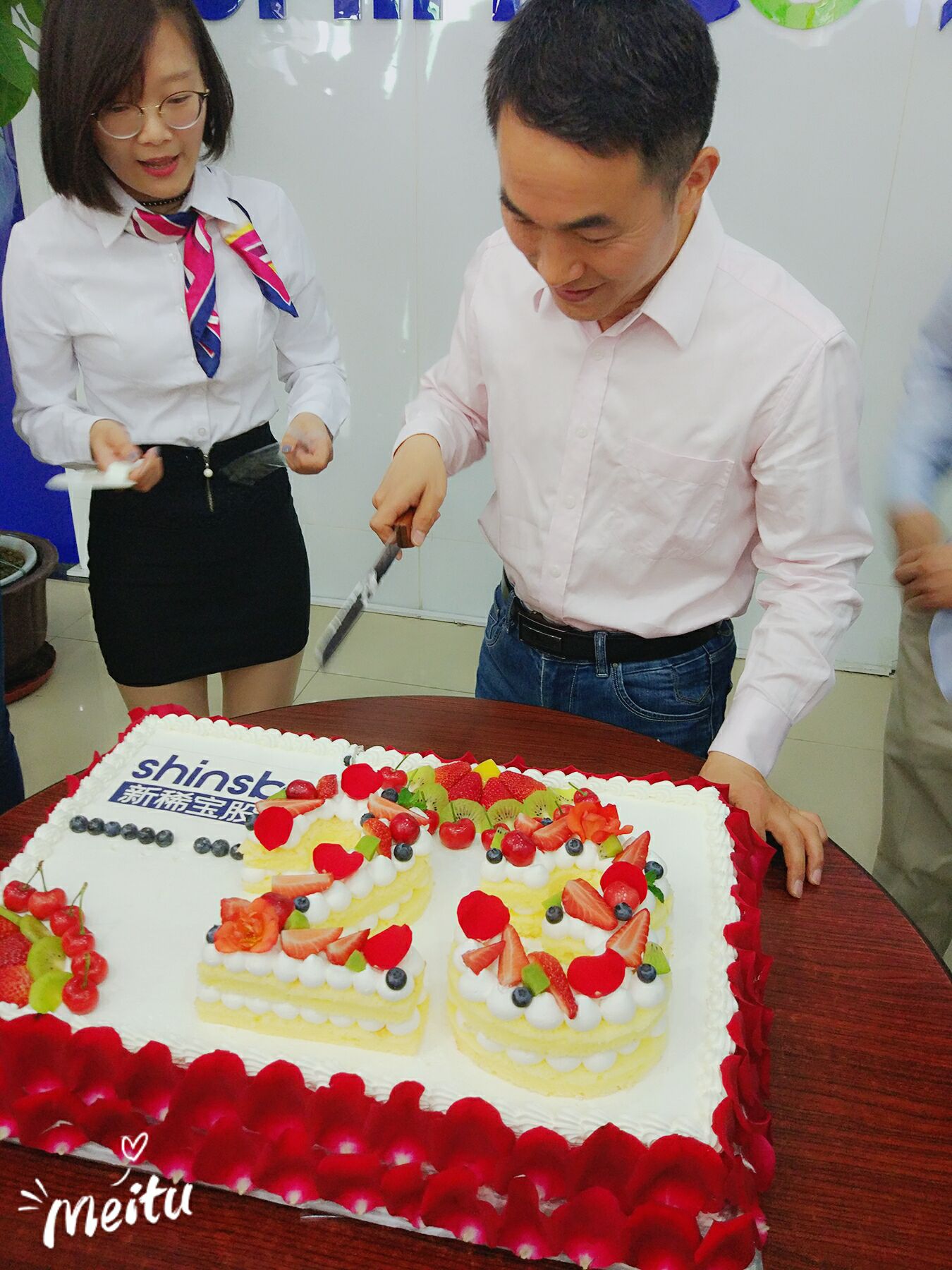 9:20董事長湯傳忠先生親自來到活動(dòng)現(xiàn)場,副總經(jīng)理鄭朝霞女士也一起來到現(xiàn)場與大家共同慶祝。9點(diǎn)23分,在主播的帶動(dòng)下,新稀寶家人們共同唱起了生日歌,伴隨著歌聲,兩位禮儀推出了特別為新稀寶23周歲生日定制的大蛋糕,將慶?;顒?dòng)推向了第一個(gè)高潮。湯經(jīng)理虔誠地雙手合十、許下心愿,并在現(xiàn)場親手為大家分發(fā)了生日蛋糕,隨后在直播間里向每位新稀寶家人送去了祝福和心愿。