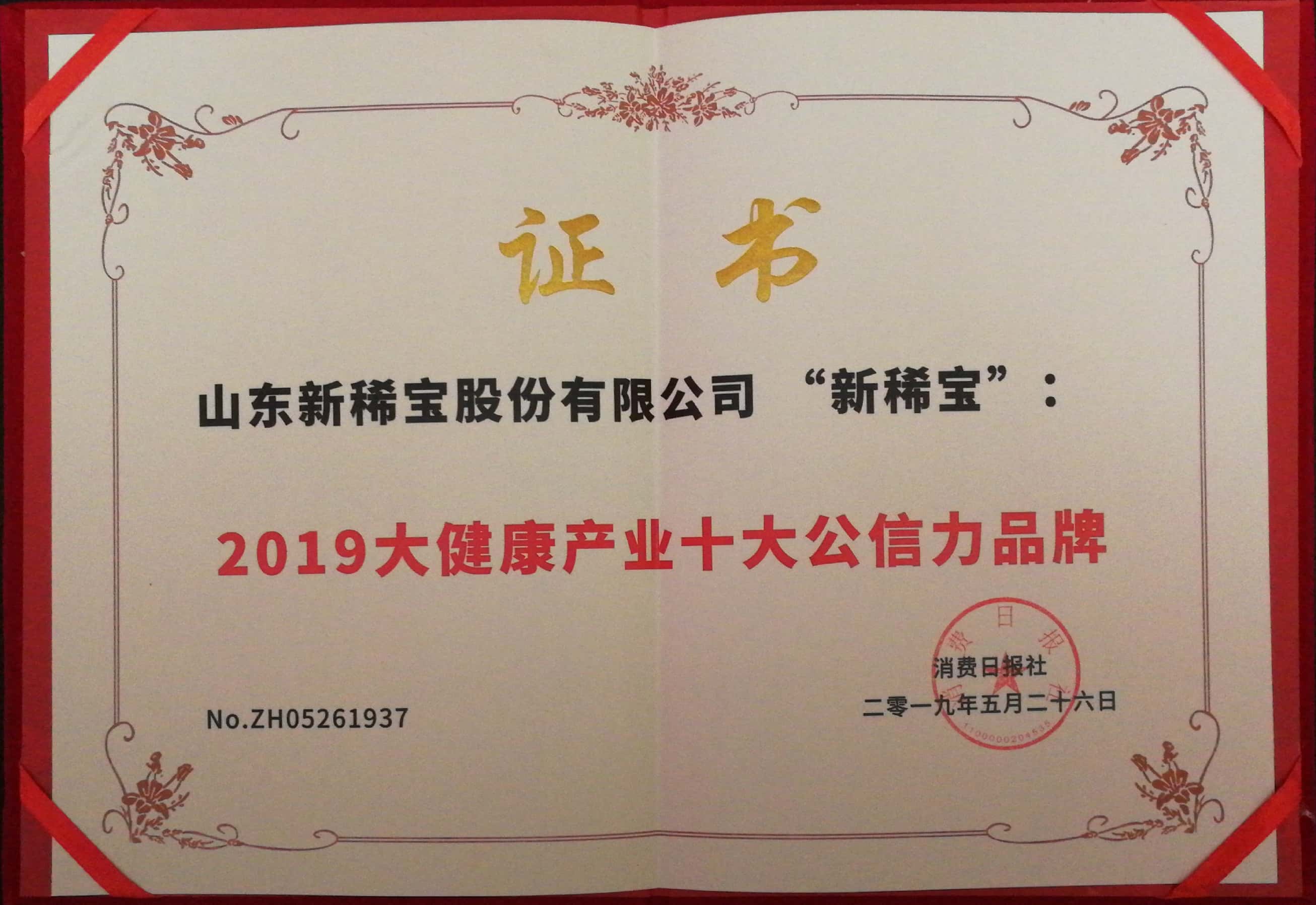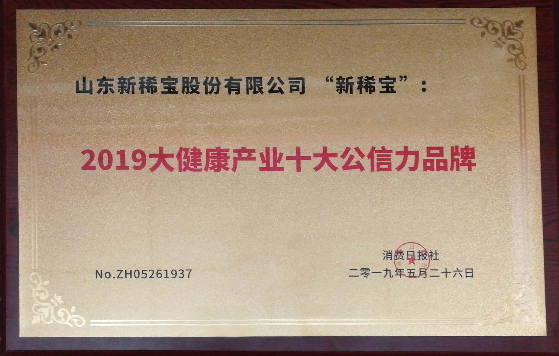 “新稀寶”被消費日報社評為“2019大健康產(chǎn)業(yè)十大公信力品牌”