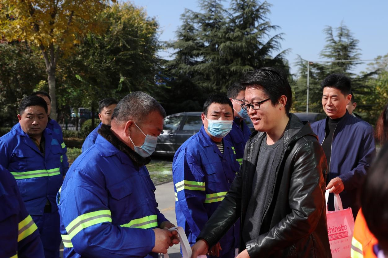 進(jìn)入秋冬后氣溫驟降,隨著陣陣寒風(fēng),樹(shù)葉紛紛飄落。在市區(qū)的各個(gè)路段,隨處可見(jiàn)環(huán)衛(wèi)工人不停移動(dòng)清理落葉。不論嚴(yán)寒下雨,還是大雪紛飛,他們都穿行在城市的大街小巷,用手里的工具,守護(hù)城市的潔凈。為了體現(xiàn)新稀寶集團(tuán)對(duì)環(huán)衛(wèi)工人的敬意,新稀寶集團(tuán)總經(jīng)辦在馮小龍總經(jīng)理的指示下對(duì)環(huán)衛(wèi)工人進(jìn)行了愛(ài)心慰問(wèn)捐贈(zèng)。