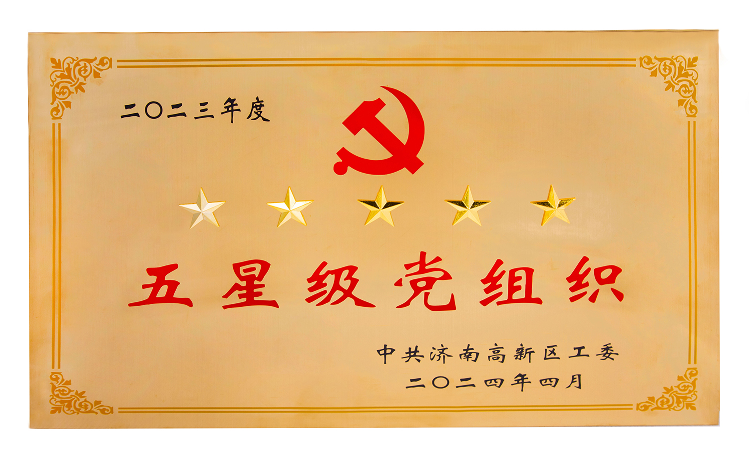 表彰授牌儀式上,我集團(tuán)黨支部書記鄭朝霞上臺領(lǐng)取2023年度“五星級黨組織”榮譽(yù)牌匾,彰顯了集團(tuán)在黨建工作上的成績與示范引領(lǐng)作用。
