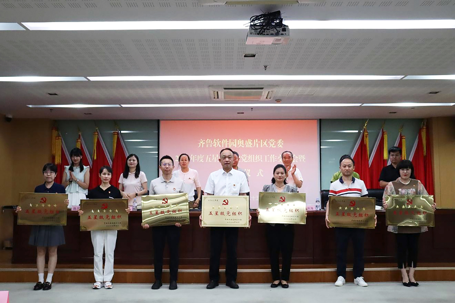 6月25日下午,濟(jì)南高新區(qū)齊魯軟件園奧盛片區(qū)黨委在奧盛大廈國際會議報(bào)告廳隆重舉辦了“評星授牌樹標(biāo)兵 黨建引領(lǐng)促發(fā)展”慶七一表彰經(jīng)驗(yàn)交流會。園區(qū)黨委和片區(qū)黨委領(lǐng)導(dǎo)及各支部負(fù)責(zé)人參會,現(xiàn)場氛圍熱烈。
